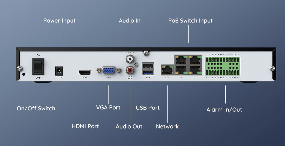 16 kanalers PoE NVR (opptaker) med 4TB HDD harddisk. Se live video og lagre video 24/7. Enkel montering med Power Over Ethernet.