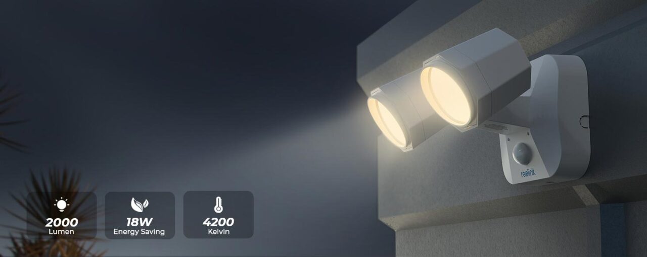 Markedets smarte lyskaster med gratis app. Perfekt for å lyse opp områder du ønsker bedre kontroll på. Kan linkes sammen med utvalgte Reolink kameraer.